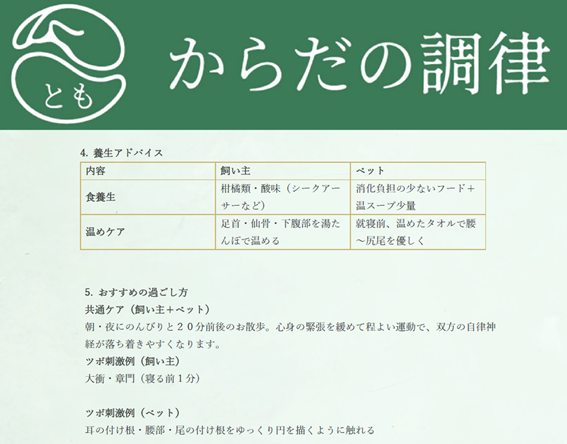 ※犬や猫のケアにも応用されており、家族全体のリズムを整えるサポートとしても選ばれています。(過去の施術実績はこちら)